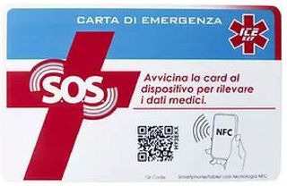 O CARTÃO ICE-KEY com NFC e Código QR tem o tamanho de um cartão ATM normal. O chip NFC e o código QR exclusivo referem-se à nuvem, à sua página pessoal da web, e permitem detectar informações úteis a qualquer momento e em qualquer lugar.